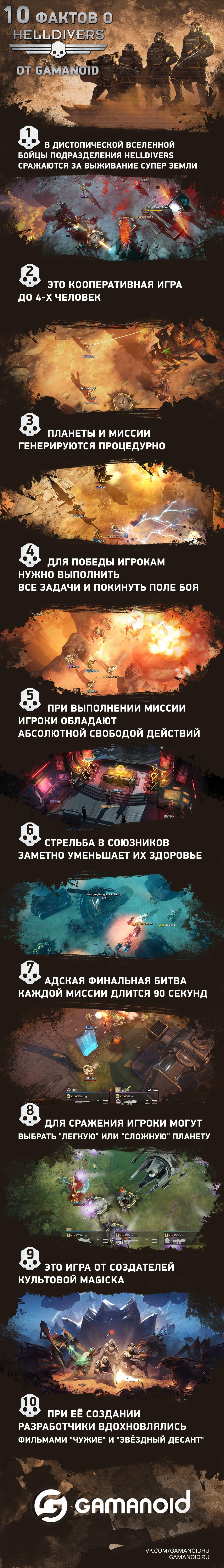 Уже на следующей неделе на PC выйдет долгожданный экшен-кооператив Helldivers от шведского инди-разработчика Arrowhead Game. В начале года он порадовал владельцев консолей PlayStation 3, PlayStation 4 и PlayStation Vita. Теперь наконец-то настала очередь PC-геймеров насладиться игрой. О главных её особенностях мы расскажем в нашей традиционной инфографике.