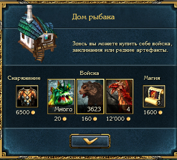 Да, да, в прочих строениях можно покупать и артефакты. Чего в Героях делать нельзя