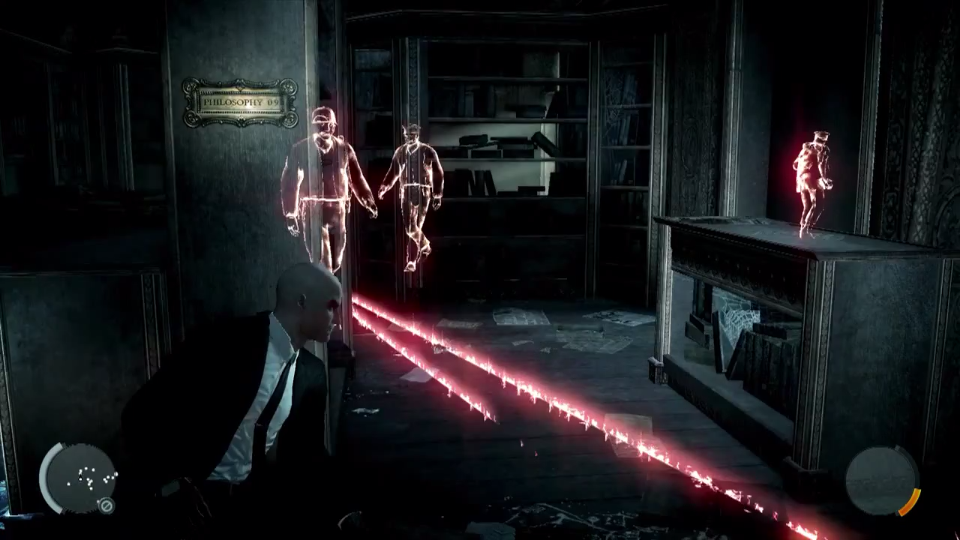1) Инстинкт. Нет, не так...... ИНСТИНКТ!!!!!11111. Не понимаю чем так всем насолила эта способность, но когда речь заходит о ней все начинают ссать кипятком и дико выражать своё негодование. Данный спор актуален только для старожил серии, всем остальным по-барабану. Способность заключается в том, что по нажатию заветной кнопочки лысый начинает видеть вражин сквозь стены (и совершать какое-либо действие, если его начинают "палить", но об этом позже). Вся соль в том, что в предыдущих частях был такой же аналог инстинкта (кроме первой части)- карта. На ней отмечались АБСОЛЮТНО ВСЕ персонажи на уровне и можно было легко проследить их маршрут. Все кричат, что инстинкт казуальщина, но нет- "всевидящая" карта из предыдущих частей, вот это казуальщина! В то время как инстинкт позволяет видеть врагов лишь на небольшом расстоянии (хоть и сквозь стены). В отличие от "всевидящей" карты "заряд" инстинкта ограничен- 2:0 в пользу хардкорности Absolution. Тем не менее данный срач не имеет смысла, если игрок играет на высокой сложности, т.к. врагов сквозь стены больше не увидеть, а инстинкт нужен только для маскировки....