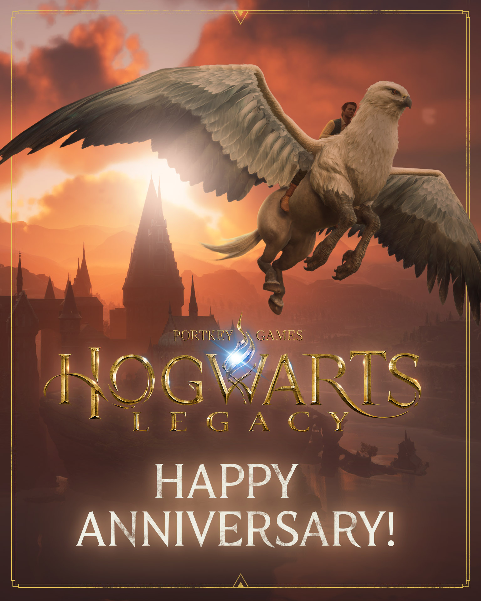 Спасибо ведьмам и волшебникам, которые украшали наши залы и территорию, раскрывали скрытые секреты, летали на спинах гиппогрифов и делали многое другое в течение еще одного года! С годовщиной! #HogwartsLegacy