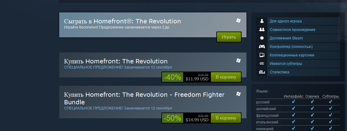 Deep Silver дает попробовать Homefront: The Revolution бесплатно в Steam. Играть можно до понедельника. Также действует скидка на игру - 40%.