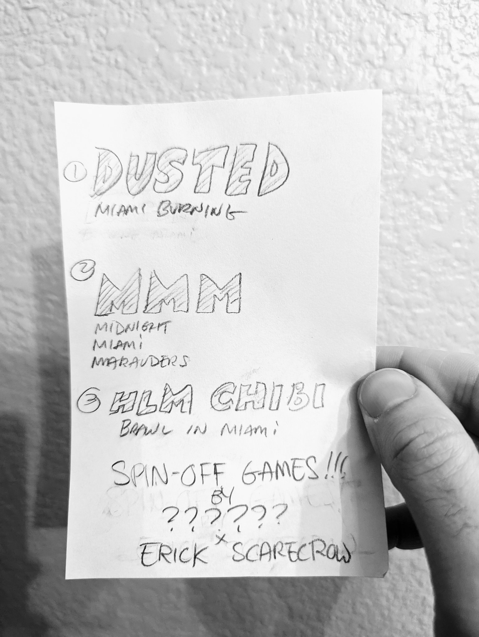 Последние несколько дней на Reddit фанаты игры Hotline Miami обсуждают таинственную игру, которая вероятно является спин-оффом Hotline Miami. Причиной обсуждения послужили посты с постерами в социальных сетях известного создателя фигурок Erick Scarecrow, в том числе фигурок по Hotline Miami.