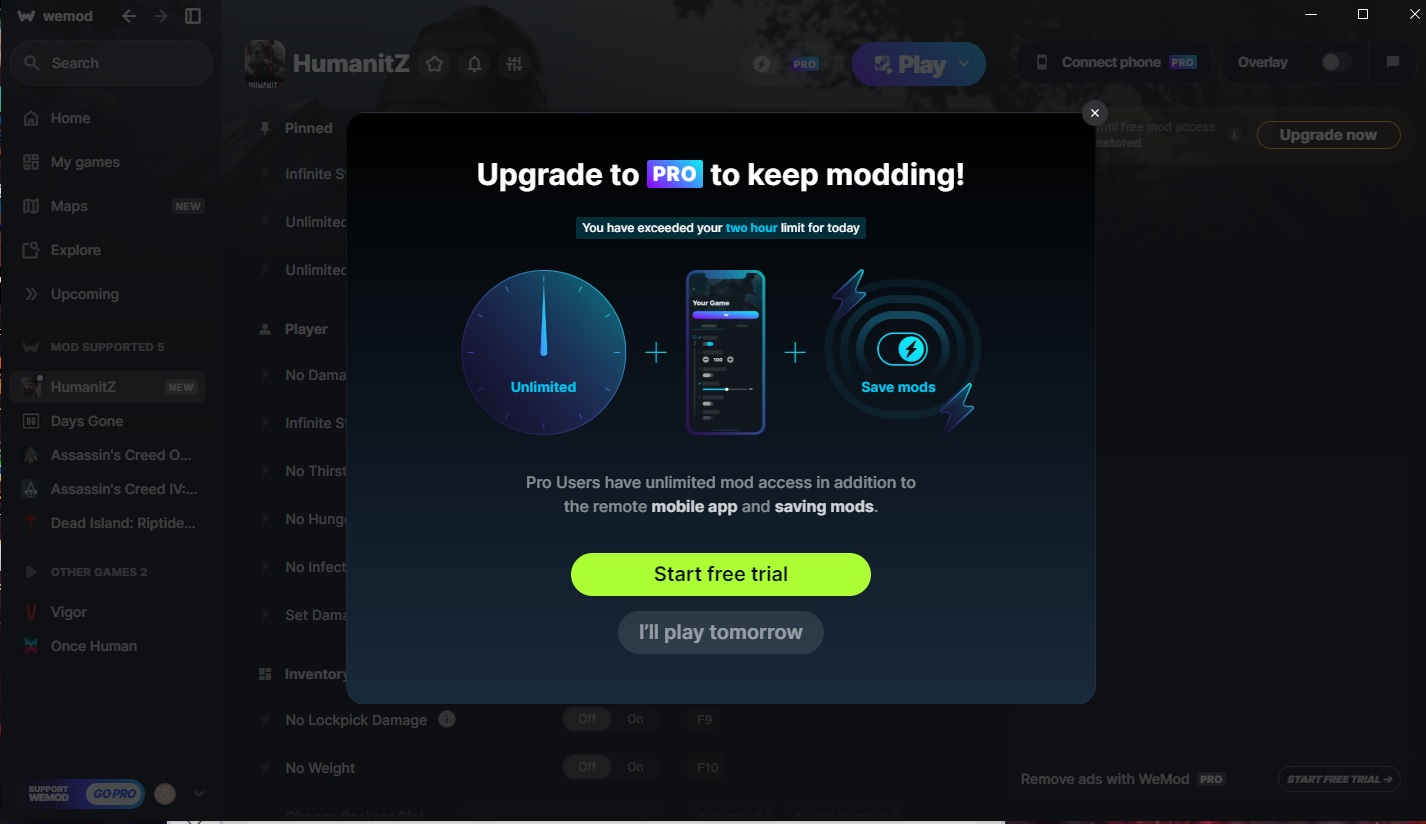 На втором пк поставил wemod - лимит времени 2 часа.