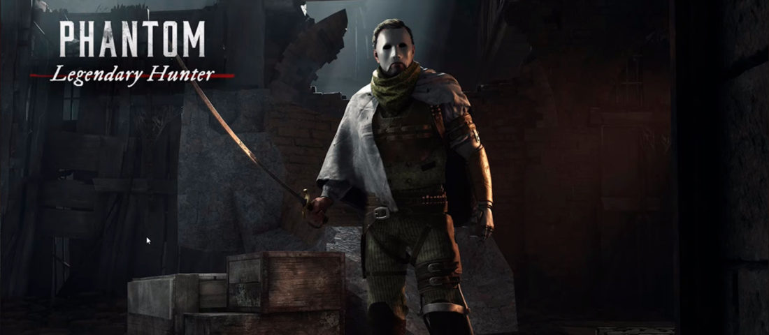 Легендарный облик охотника Gus Leroux, который будет доступен только в платном дополнении. Бывший адвокат со склонностью к насилию, любящий театральные эффекты — так лицо он скрывает за маской не потому, что ему неловко показать свои шрамы, просто так он может больше страха нагнать на своих конкурентов.