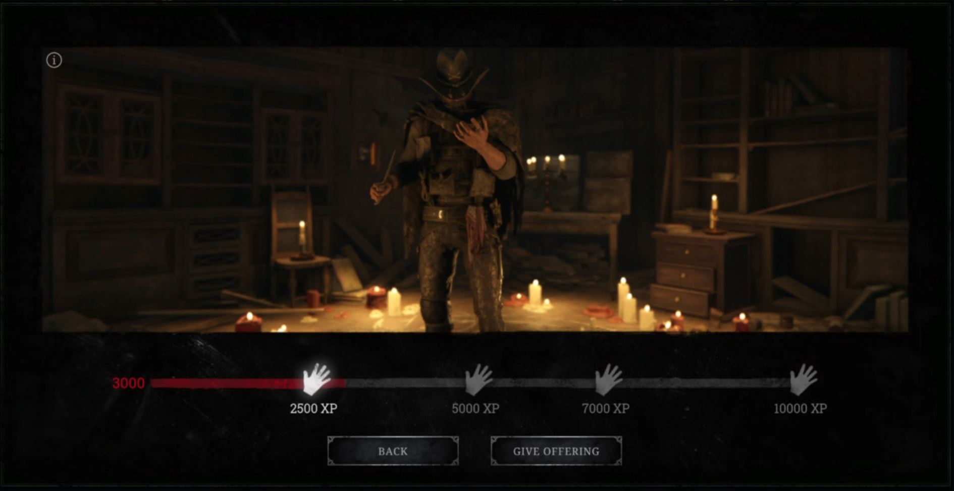 Если у игрока нет достаточного количества очков опыта, чтобы дойти до последней ступени, он может совершить сделку с мистером Шери, заплатив ему кровавые облигации, но при этом стоит помнить, что финальное подношение можно сделать только после завершение предыдущих трех этапов.