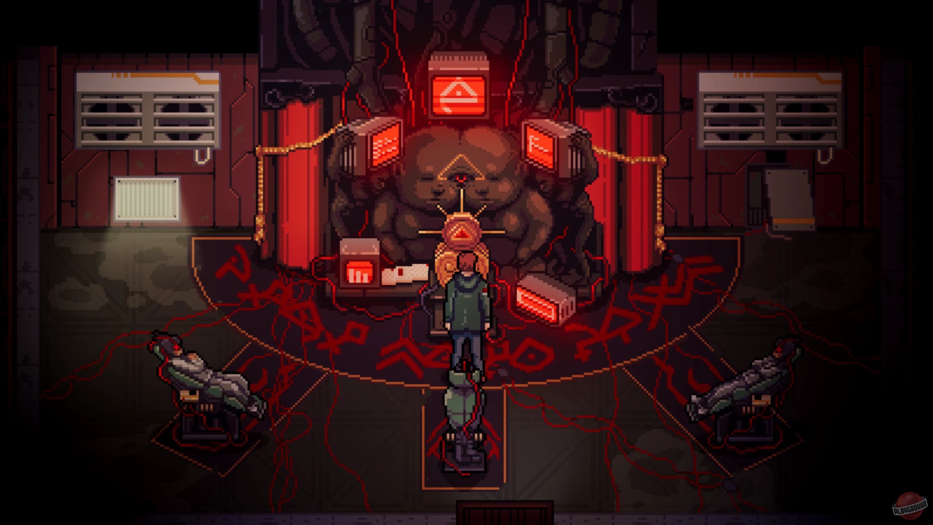 Хоррор с пиксельной графикой от испанцев из Obscure Tales — это те, кто делал Lamentum. Только если там была викторианская эпоха, то Inanima переносит нас в 80-90е, в какой-то изолированный комплекс корпорации Spira. История такая: у Джейкоба Миллера жизнь идёт под откос, будущего особо нет. И тут ему приходит приглашение поучаствовать в испытании нового пищевого продукта — десять дней в изоляции, всё оплачено, типа помочь человечеству. Звучит подозрительно, но парню особо выбирать не приходится. Ясное дело, что вместо простых экспериментов с едой его ждёт полный кошмар — жуткие твари, лабиринты коридоров и борьба за выживание.