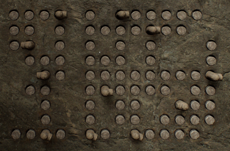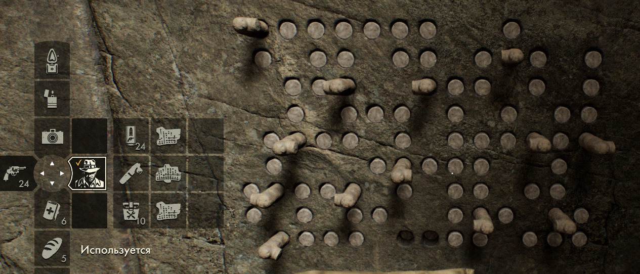В итоге не пошёл дальше по сюжету, а остановился у стены и принялся за решение. В результате, спустя около полутора часа решение было найдено. Ниже прикладываю скрины слева направо: