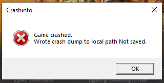 Вылетает игра с ошибкой Game crashed. Wrote crash dump to local path Not saved