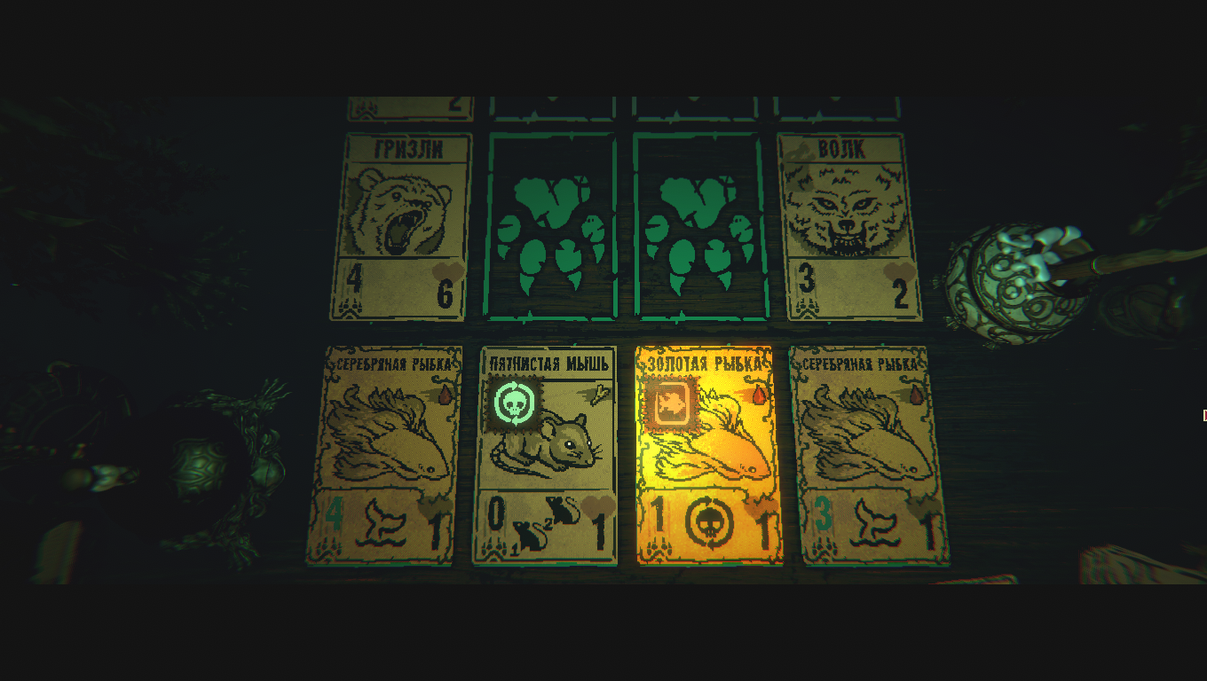 - Скрытые способности: Если присвоить символ «Детёныш» на второй ход превратится в карту «Серебряная рыбка», если присвоить символ «Оторванный хвост» оставляет на своем месте карту «Разбитое зеркало».