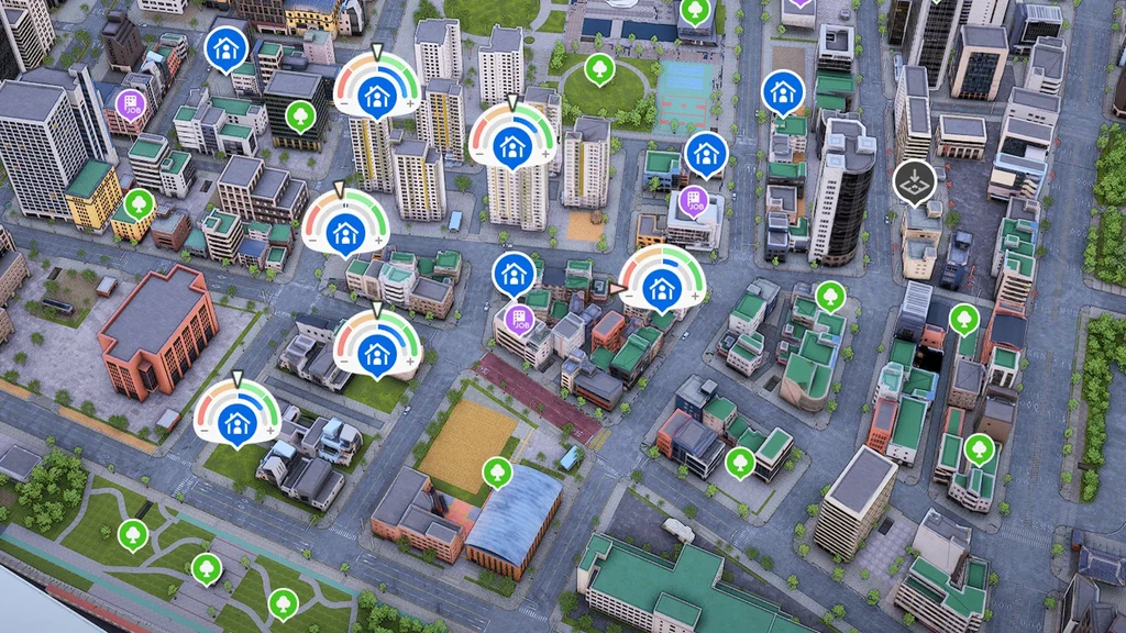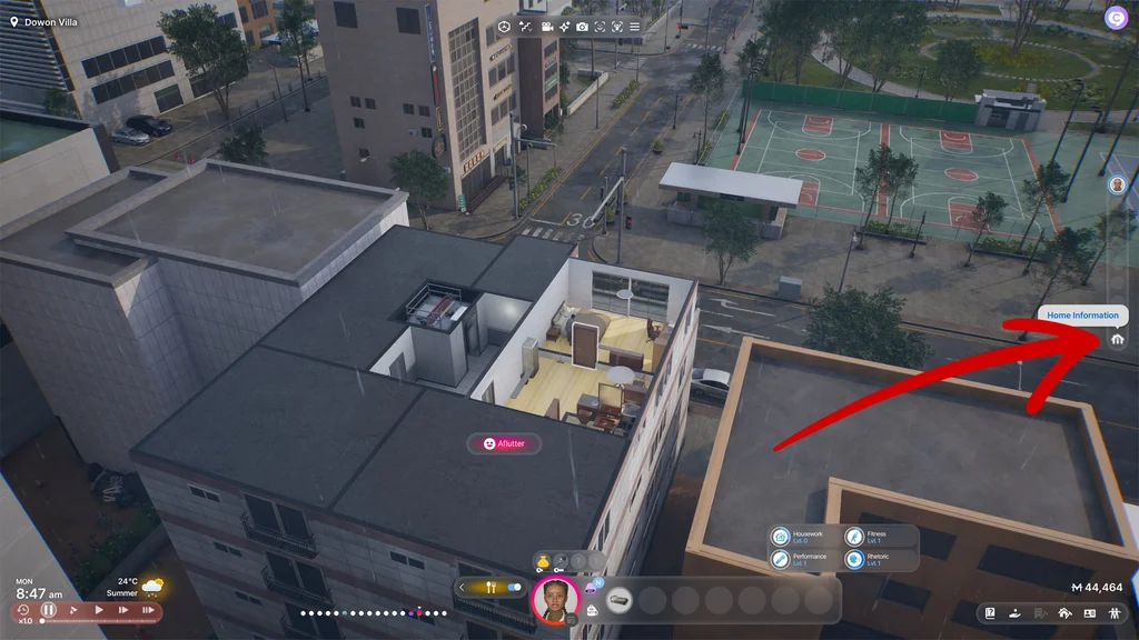 После создания персонажа нужно выбрать город и жилье. Разные города отличаются внешним видом и доступными профессиями, но игровой процесс в целом остается неизменным. После выбора города откроется карта с возможными вариантами жилья. Дома различаются стоимостью, и чем роскошнее дом, тем больше денег (игровая валюта называется «Meow») потребуется на его покупку.