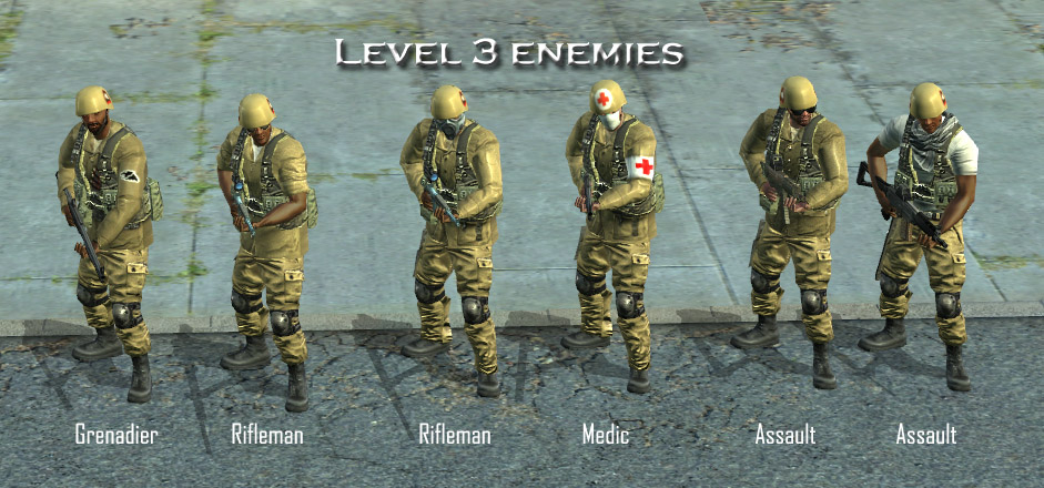 - Добавлены новые дополнения для оружия: Sights set, Grip kit, Laser sight, Rifle suppressor, Folding stock, Gen II sights system, Sniper scope Mk II, PSO-3 Scope, Rifle sling;