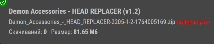 - Demon Accessories - ITEM - мод добавляет два аксессуара: рога, клыки, хвост и рога, хвост (без клыков)