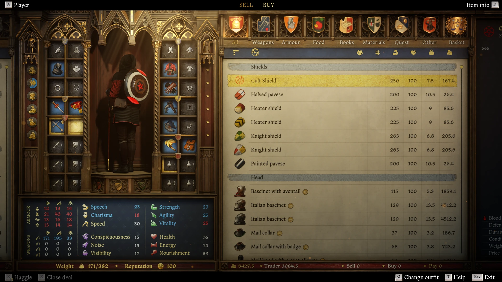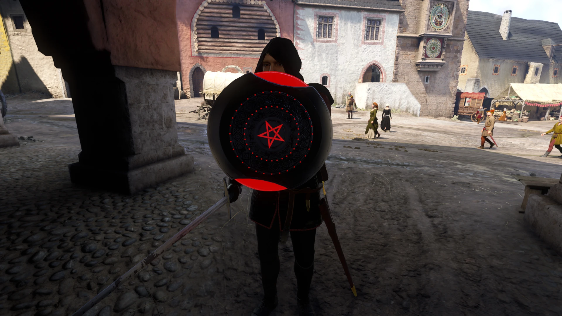 Мод добавляет в игру уникальный щит культа, который имеет две версии: светлую и темную (устанавливайте только одну). Его можно купить у оружейника в Кутна-Горе (где он находится можно увидеть на скриншоте) или добавить в инвентарь через консоль: wh_cheat_additem e0f63550-bd42-4c48-9e57-a0a30055d9b1.