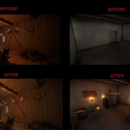 - пустое здание преобразовано в лазарет, в котором можно найти алхимический стол, рабочие все еще не закончили ремонт крыши;