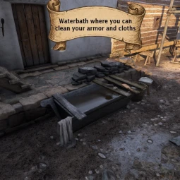 - рядом с лазаретом расположено корыто, в котором можно постирать грязную одежду;