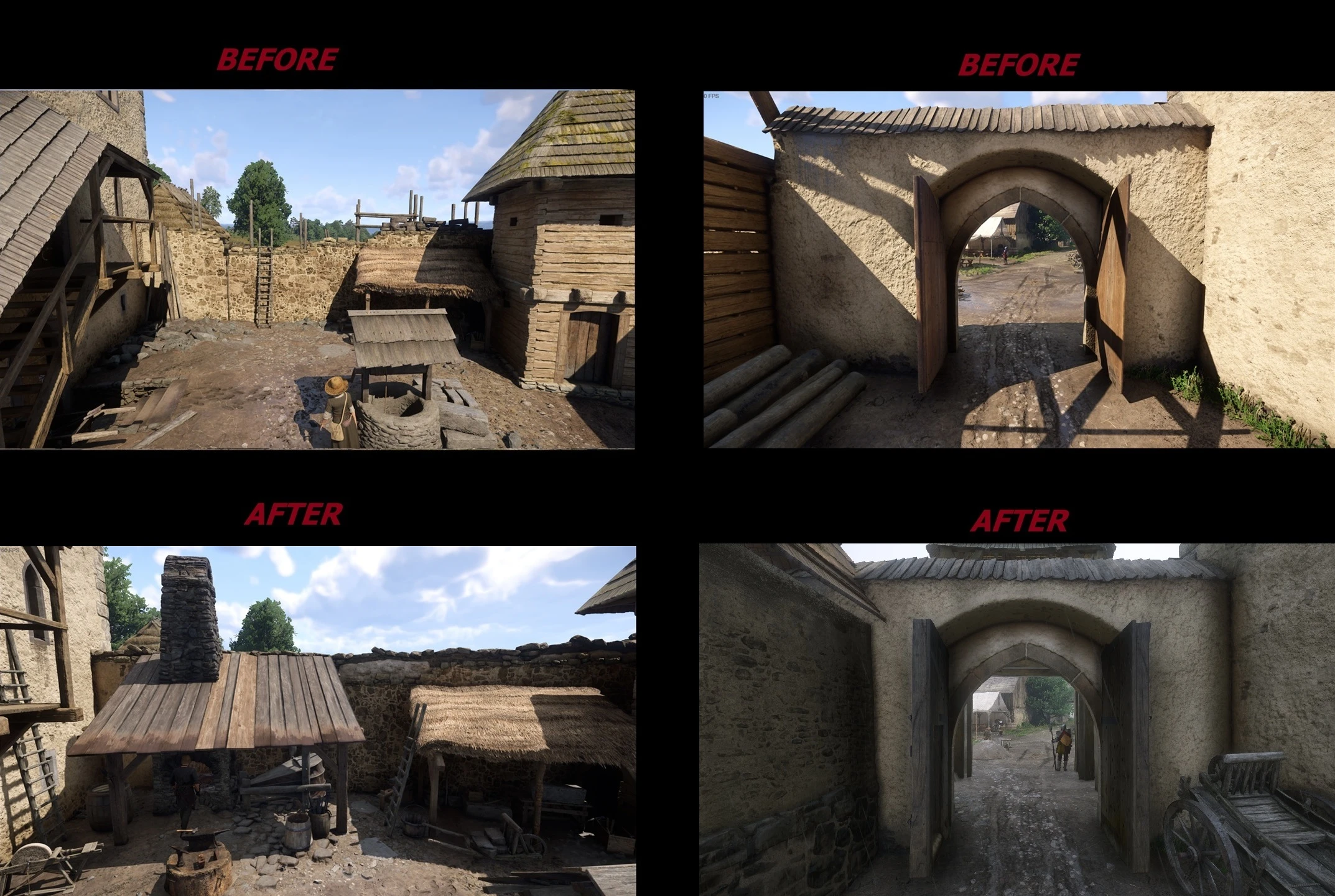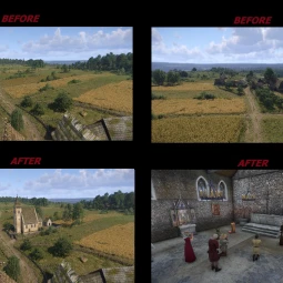 - построена придорожная часовня, в которую можно зайти и помолиться. Горожане тоже посещают часовню, чтобы вознести свои молитвы (с 11:00 до 12:00). Рекомендуется в настройках игры установить качество шейдеров на «среднее» (качество «высокое» и «ультра» могут привести к некорректному отображению стен в часовне). Кроме того, если в помещение пытаются зайти два нпс, второй нпс зависнет на месте, если дверь открыта (для «оживления» нпс просто закройте дверь либо перемотайте время). - Жители замка и деревни: