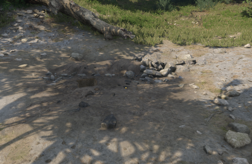 Найти кости дракона, шел по подсказкам, по ручью вверх, до валуна, пришел на место, там поляна кости должны быть там, облазил все вдоль и поперек ничего. Прокрутил время на ночь, так же безуспешно.