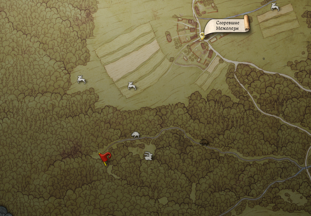 Затем отправляйтесь по маркеру на лесопилку, далее следуйте по дороге на юго-запад до обозначенного на карте ручья. После этого продолжайте двигаться, как описано выше, чтобы отыскать нужное место.