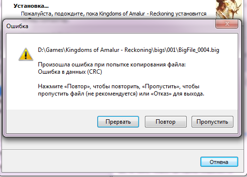 при установки игры выдало ошибку. ISDone.dll Произошла ошибка при распаковке: Не совпадает контрольная сумма!