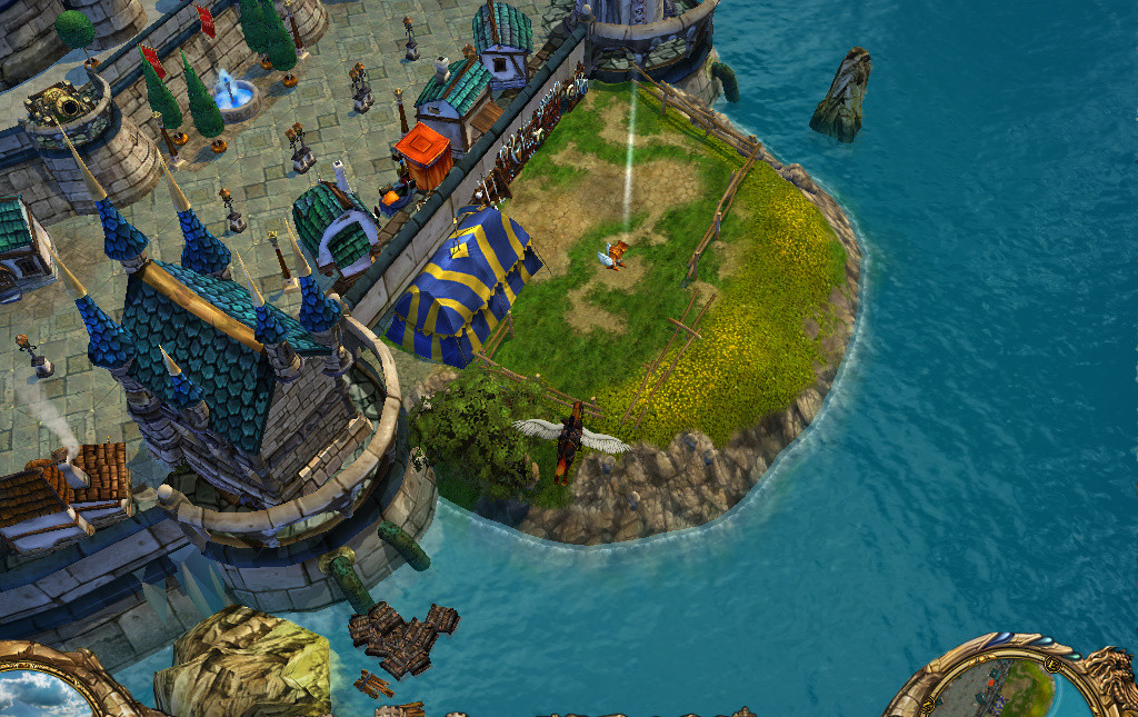 "На болоте подбираешь шпиона и пробуешь пройти в замок - тебя не пускают ( говорят, что у них стоит блокирующая система). У Мари Кюри узнаёшь, что обмануть систему можно с помощью шлема, у Сплетника покупаешь шлем ( проходишь ещё пару заданий) и засылаешь шпиона в замок. Связь с шпионом через бутылку с запиской ( плавает у стен замка)"
