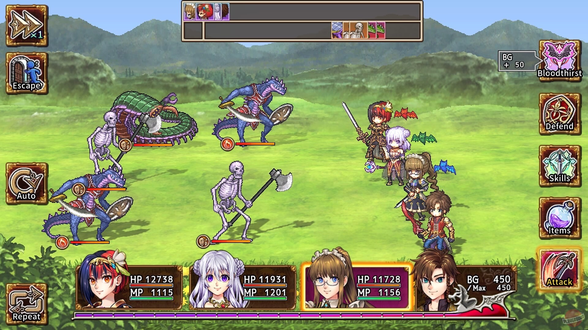 Геймплей обычный для таких игр — ходишь по локациям, дерёшься в пошаговых боях, качаешь уровни. Правда, есть пара необычных штук: вместо обычных очков здоровья у Томы какой-то кровяной индикатор, и ещё режим кровожадности включать можно — тогда персонажи внешне меняются и новые способности получают.