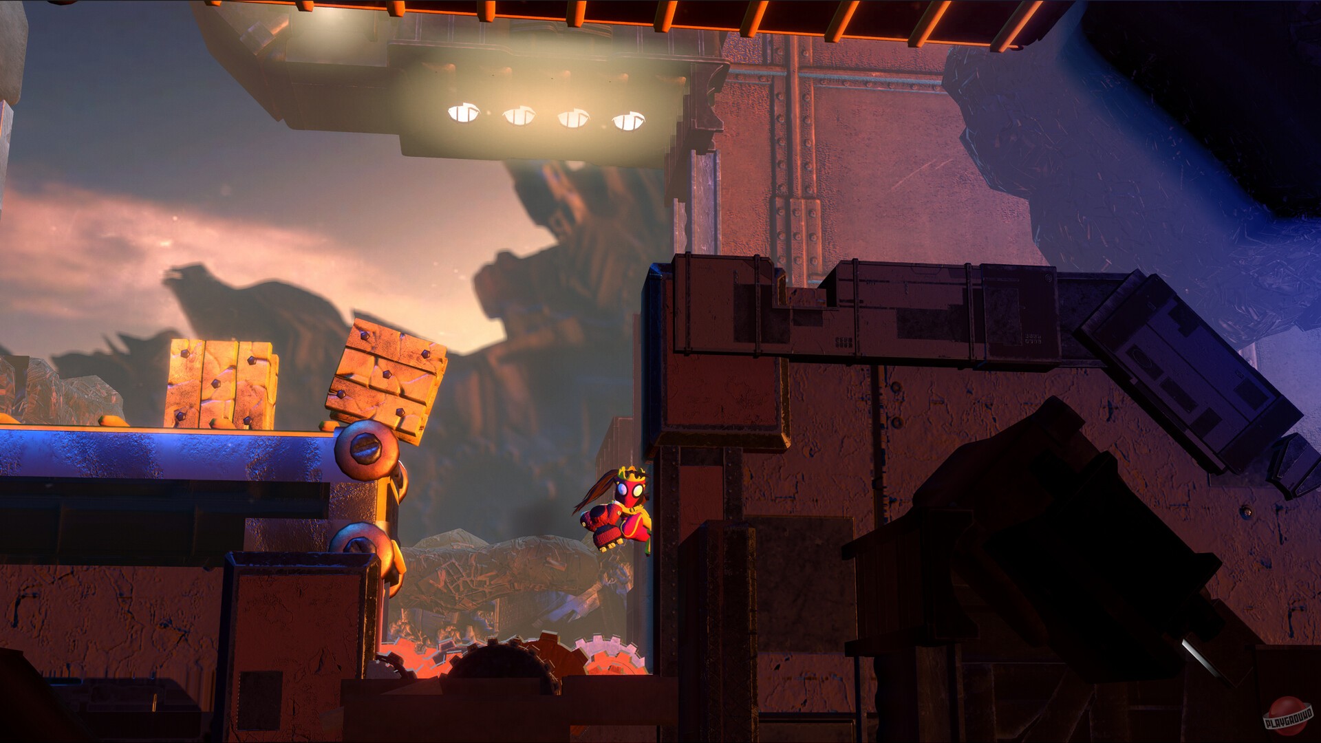 Всё это действо происходит в разных зонах Моторленда — от высоток с механизмами до закопчённых лесов.