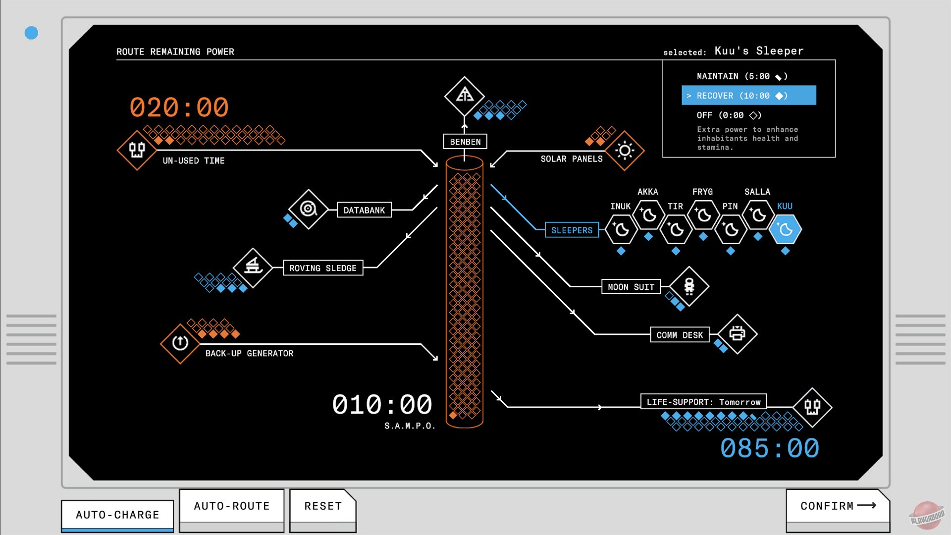 Весь геймплей крутится вокруг распределения времени и ресурсов. Что будем делать сегодня? Чинить солнечные панели, копаться в старых документах или пытаться выйти на связь с кем-нибудь? На всё времени не хватит, так что придётся выбирать. Забавно, что общаться с другими персонажами можно только кивками — «да» или «нет». Видимо, навыки разговора атрофировались за время службы на Луне. А ещё у игры есть странная одержимость «сестринством» — не то монашки в космосе, не то какой-то культ. Короче, совсем не то, с чем хотелось бы застрять на Луне.