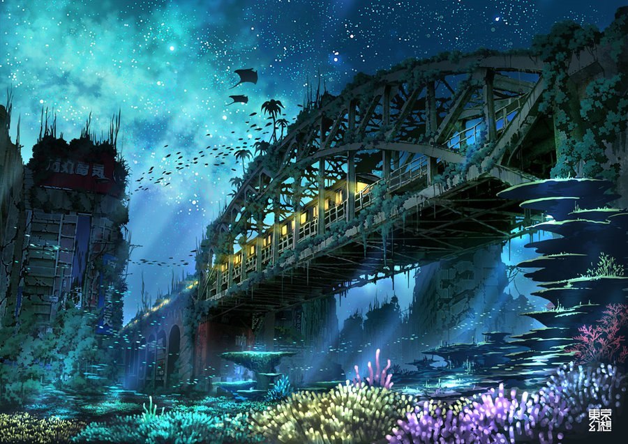 Да на некоторых картинках сразу видно, что автор (рисунков) - наркоман какой-то!! Какие , нахер, скаты в небе и кораллы на земле? WTF?! Я понимаю, если бы он нарисовал это под водой, НО ЗВЕЗДНОЕ НЕБО причем здесь? Что за херь на рисунке с McDonald`s ом? WTF??!! А остальное нарисовано нормально, только в аниме стиле. Сразу чувствуется, что это рисунок.