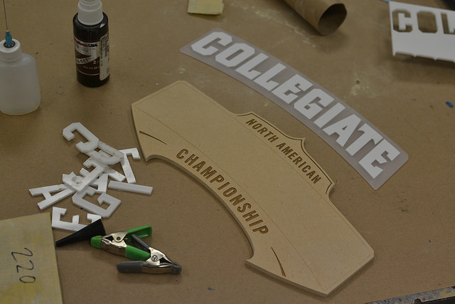 Получив просьбу построить один здоровый трофей для победителя и восемь наград поменьше, Крикс собрал их из стирола, акрила, синтры (тип ПВХ доски) , СПФ( средней плотности фибролит) и большого блока уретана.