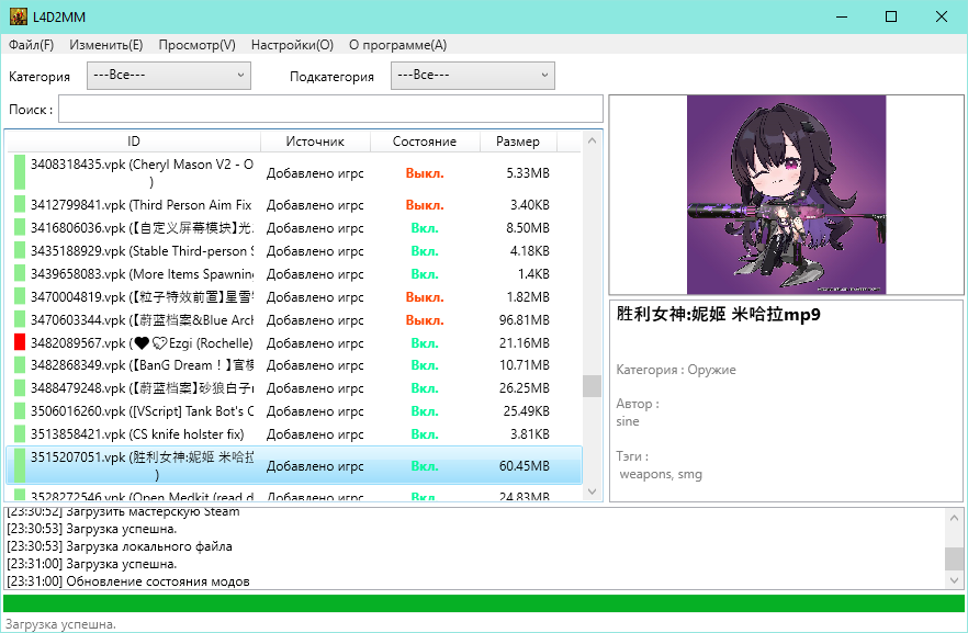 Для подробной информации о функциях программы здесь: https://github.com/xavier-cai/L4D2ModManager/