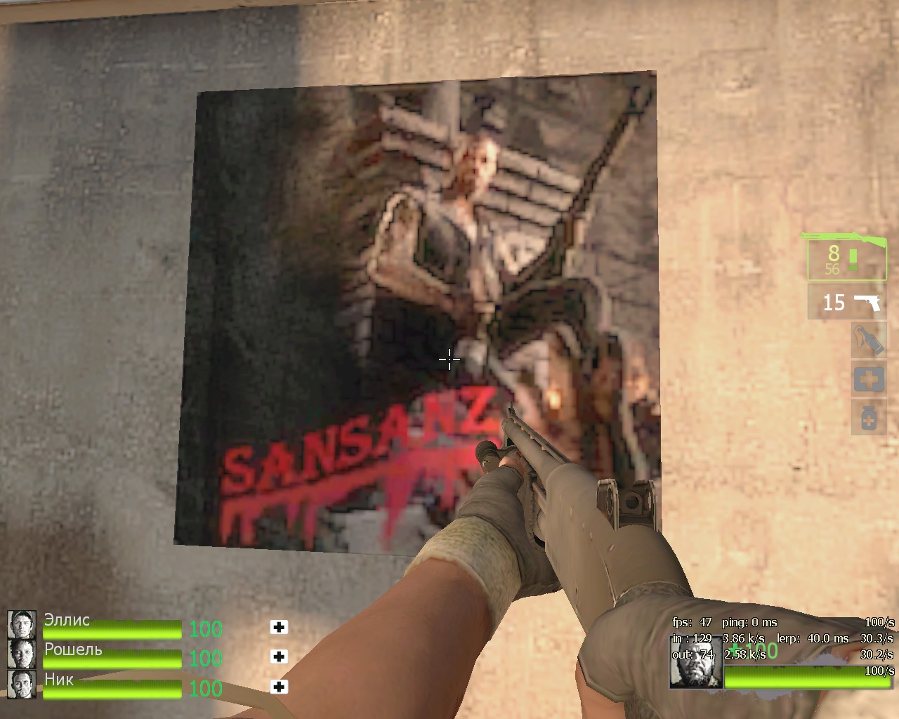 у мя спреи обманки,типа аптечки или патронов,выжившие подбегают а я их с корешами хеееерак и в мясо:D