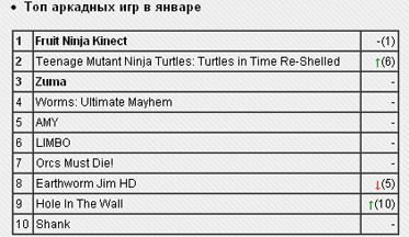 Топ аркадных игр за прошлый месяц в российском Xbox Live возглавляет игра Fruit Ninja Kinect. Второе место за Teenage Mutant Ninja Turtles: Turtles in Time Re-Shelled. Топ-3 с конца возглавляет Zuma. Внутри новости весь список.