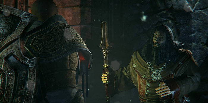 Появляется на пути к заброшенному храму после уничтожения Идолопоклонника на кладбище. Перед большими воротами на арене она попросит отыскать древние скрижали. Нужно собрать все пять, чтобы получить осколки от неё.