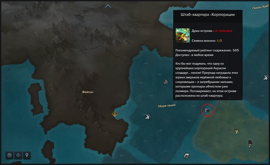 Местоположение: океан Процея, у побережья Фейтона, между Морем теней и мутными водами. Рекомендуемый рейтинг снаряжения: 505. Доступен: в любое время