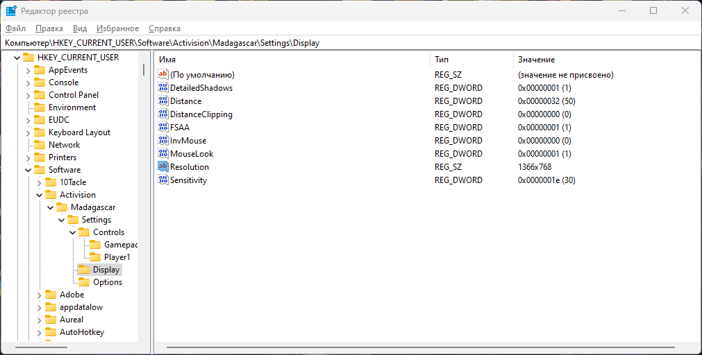 HKEY_CURRENT_USER\Software\Activision\Madagascar\Settings
