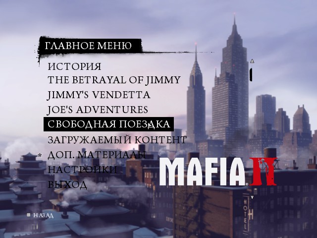 НОВАЯ ВЕРСИЯ Фрирайд от IVAN144 версия 2/СКАЧАТЬ Вторая версия не требует наличие первой Отличия от первой версии -Покупка авто -Новые задания -В меню опций музыка, игравшая в главном меню в Мафии I -В заданиях все иконки движутся -Особняк и задание в нём загружаются подругому. -Плеер 2 листа Рок-н-ролл и 1 с классической музыкой (есть музыка из 1-й Мафии) Если плеер включен, то музыка любого меню отключается -Задание с Джо загружается всегда правильно (исправлена ошибка) -Ресторан "Красный дракон" зимой загружается правильно (исправлена ошибка) -При старте анимация -Более удобное чит-меню -Реальное открывание дверей во всех домах и некоторых локаций -Голосовые реплики Джо. -Возможность покупать газеты и ловить рыбу -Можно спать на кравати -Добавлены локации: Ювелирный магазин, гараж и прачечная в отеле "Герб Эмпайра" -Возможность управлять лифтом в спиртзаводе -Из выбора дома убрана квартира матери (меню опций оставил)