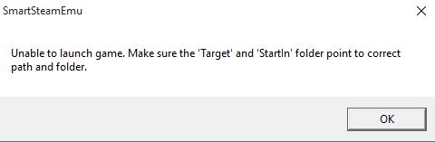 2. После этого пробовал запускать с exeШника "SmartSteamLoader", но получал вот такую ошибку, мол убедитесь, что путь к игре и к файлу запуска указан корректно;