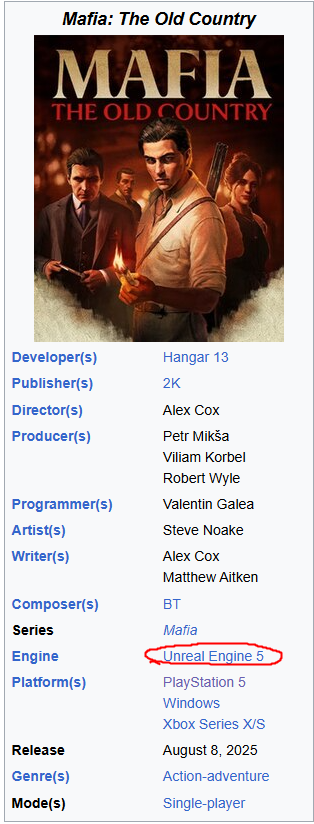 это не unreal engine 5. У мафии свой движок. Перепроверь.