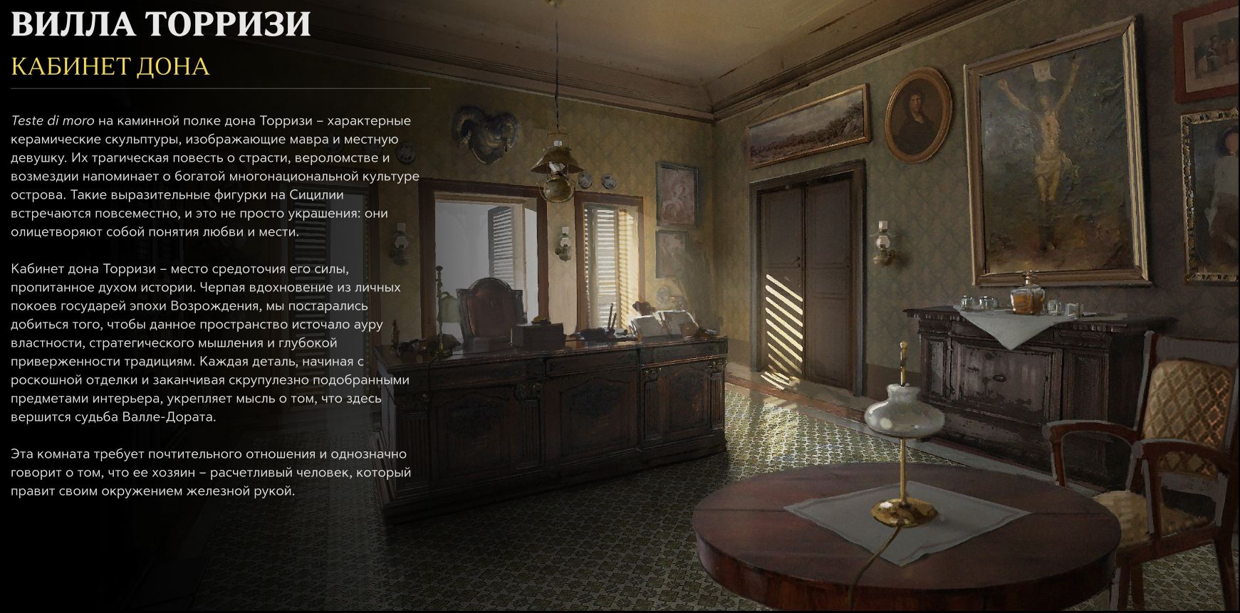 Кабинет дона Торризи место средоточия его силы, пропитанное духом истории. Черпая вдохновение из личных покоев государей эпохи Возрождения, мы постарались добиться того, чтобы данное пространство источало ауру властности, стратегического мышления и глубокой приверженности традициям. Каждая деталь, начиная с роскошной отделки и заканчивая скрупулезно подобранными предметами интерьера, укрепляет мысль о том, что здесь вершится судьба Валле-Дората.