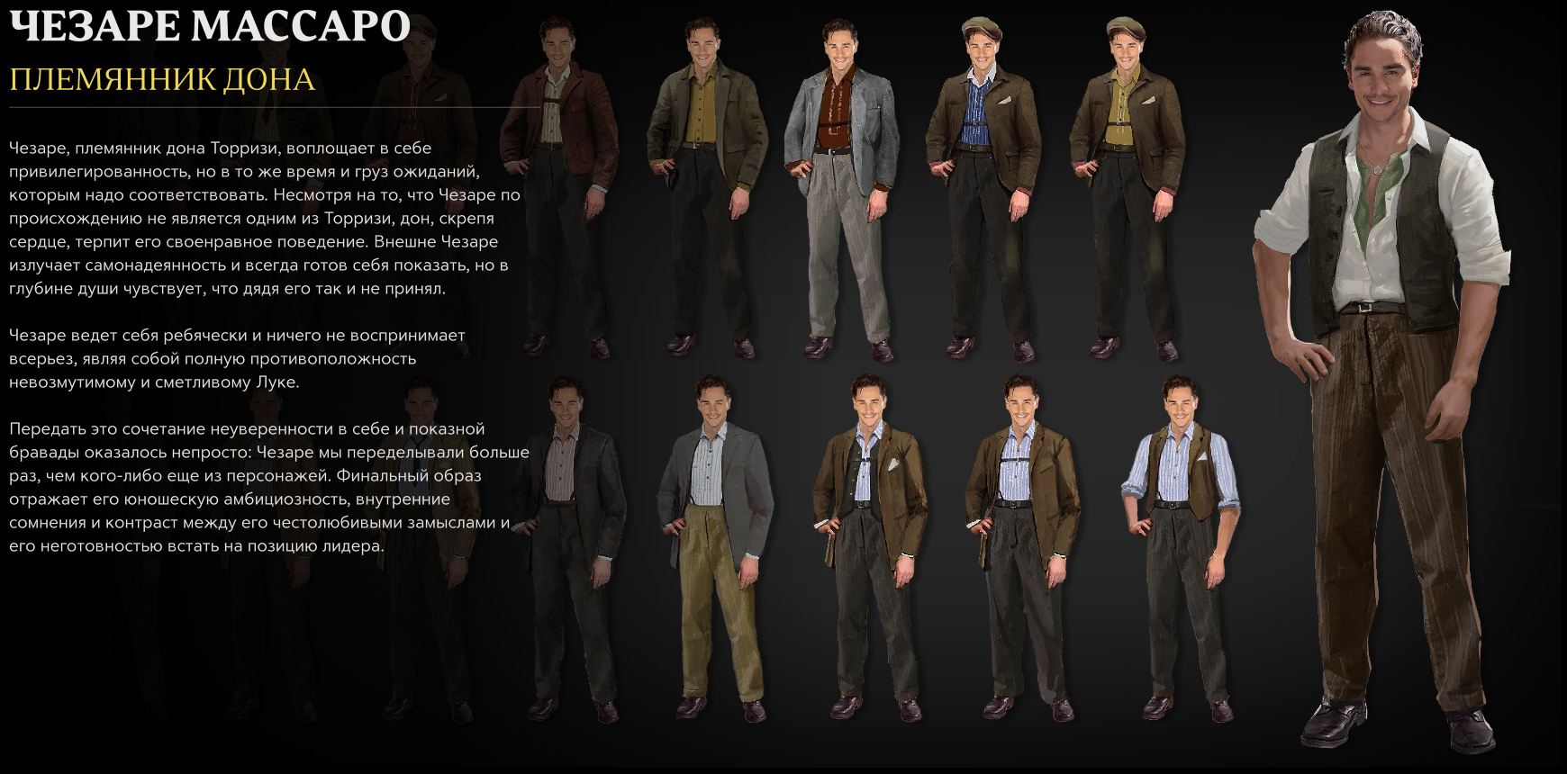Передать это сочетание неуверенности в себе и показной бравады оказалось непросто: Чезаре мы переделывали больше раз, чем кого-либо еще из персонажей. Финальный образ отражает его юношескую амбициозность, внутренние сомнения и контраст между его честолюбивыми замыслами и его неготовностью встать на позицию лидера.