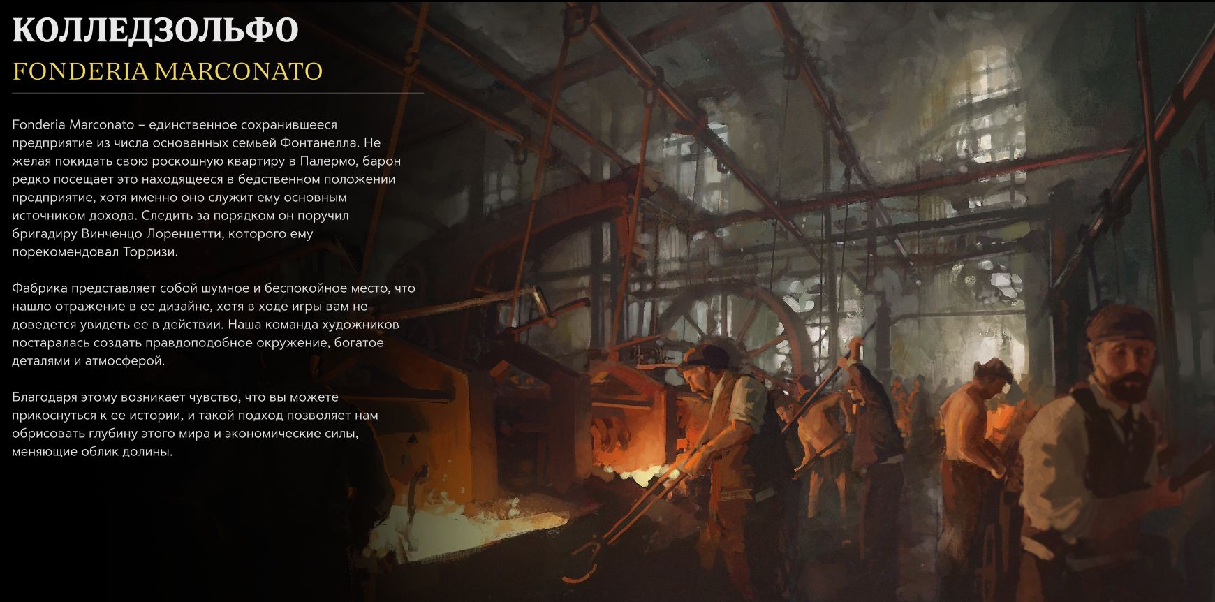 Фабрика представляет собой шумное и беспокойное место, что нашло отражение в ее дизайне, хотя в ходе игры вам не доведется увидеть ее в действии. Наша команда художников постаралась создать правдоподобное окружение, богатое деталями и атмосферой.