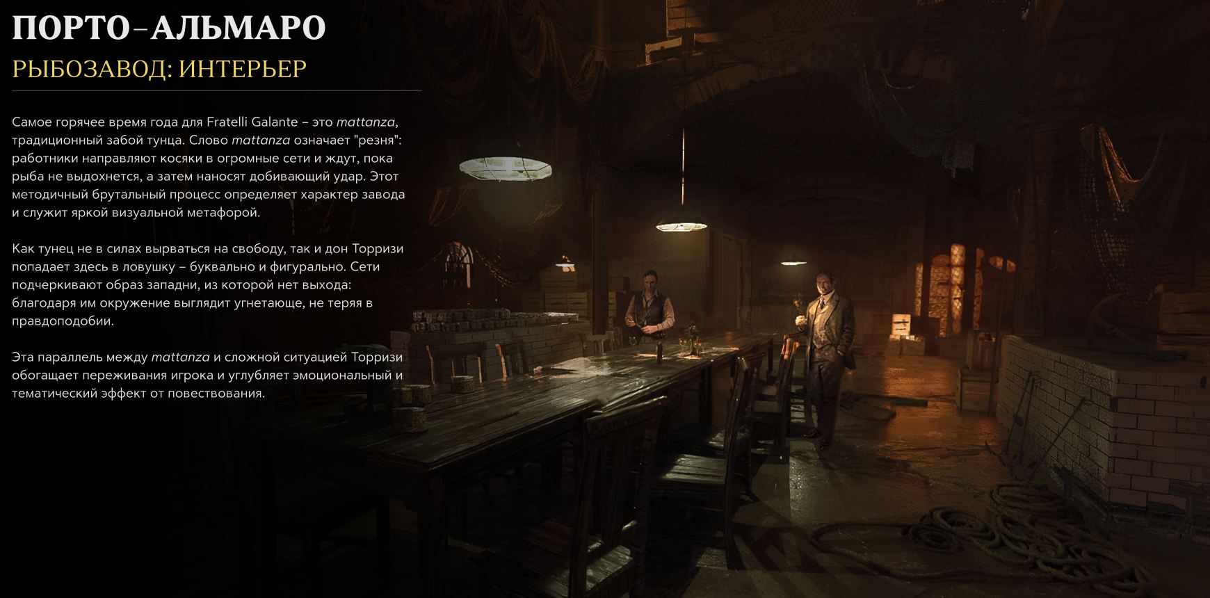 Эта параллель между mattanza и сложной ситуацией Торризи обогащает переживания игрока и углубляет эмоциональный и тематический эффект от повествования.