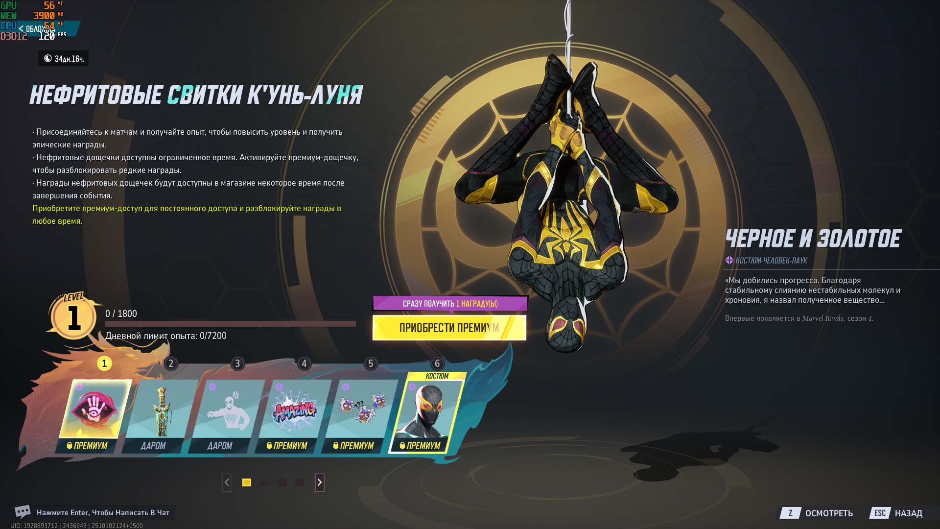 - Костюм для Человека-паука: Чёрное и Золотое (премиум)
