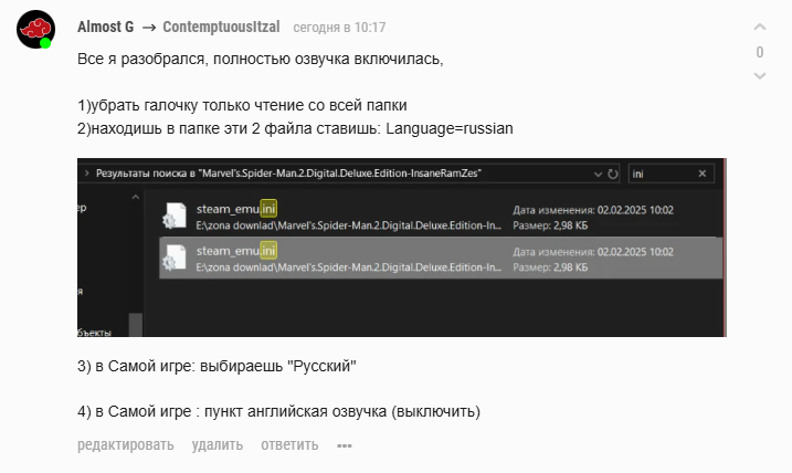 Все ок, но проблемка ток с русской озвучкой, а точнее ее отсутствие. Хз как фиксится и в файлах пробовал прописывать что то, но поменять не выходит. Кто то смог это решить?
