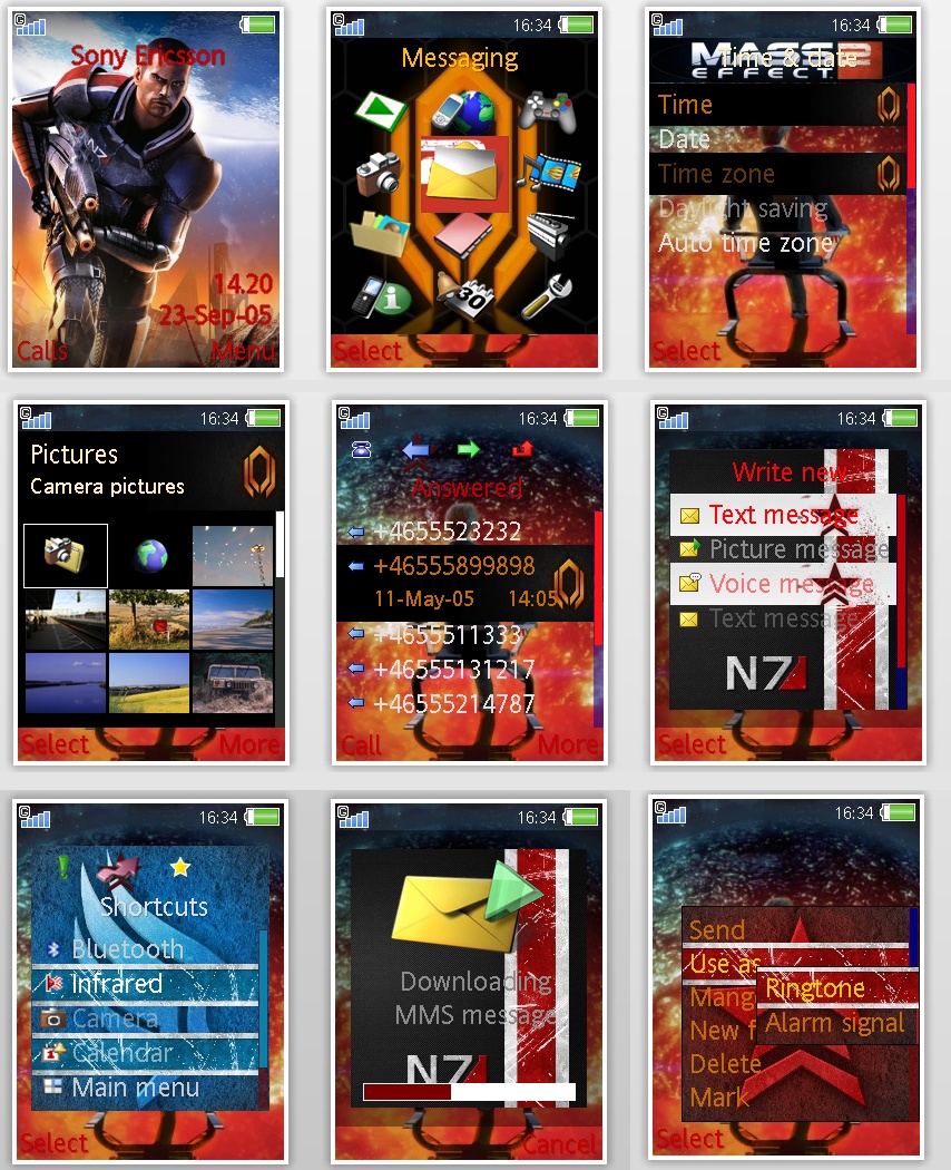 Тема по Mass Effect'у для телефонов SonyEricsson с разрешением экрана 240х320.
