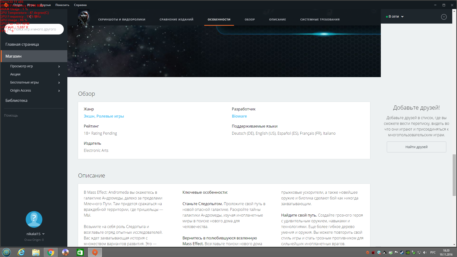 парни я не понял в игре должен же быть русский да а то я хочу оформить предзаказ mass effect andromeda в origin а там в языках написано что там Поддерживаемые языки