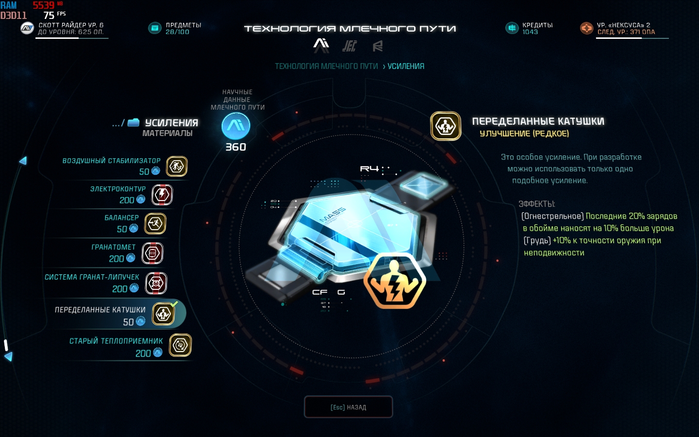 Ты его создал - остаётся только применить.Снизу под бронёй и оружием есть ячейки.Туда они и добавляются - моды и усиления.
