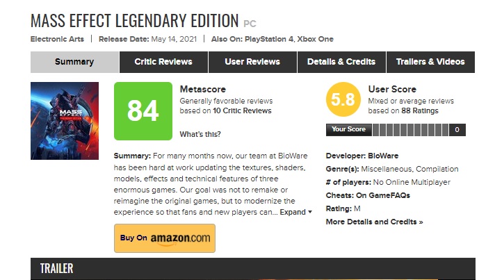 На агрегаторе рецензий Metacritic появились оценки сборника Mass Effect Legendary Edition, в который вошли три части игры с улучшенной графикой. Все версии ремастера получили оценку выше 7 баллов из 10.