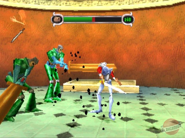 Система здоровья тут стандартная — зелёная полоска наверху экрана, которая пустеет, когда по тебе бьют. Чтобы её восполнять, нужно искать фонтанчики с зелёной водичкой или маленькие флаконы. Ещё можно найти бутыли с живой водой — всего их 9 в игре, они работают как автовоскрешение после смерти. Также на каждом уровне есть ещё Чаша Душ, которая собирает энергию от убитых врагов — доступна только когда заполнится на 100%.