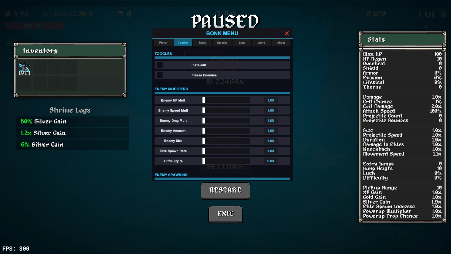 BonkMenu — профессиональное мод-меню для игры с управлением персонажем, боями и инвентарём. F1 - это привязка клавиш по умолчанию